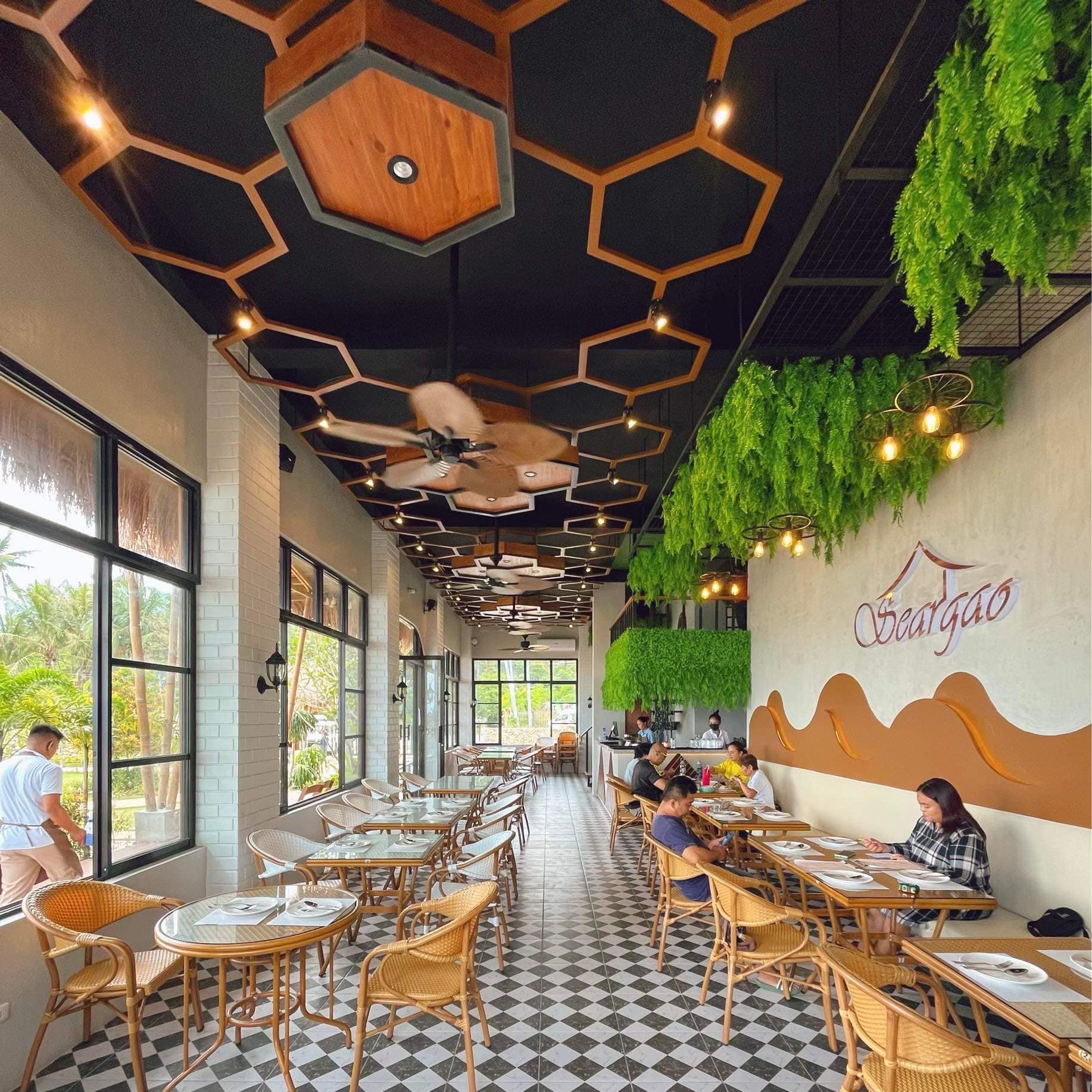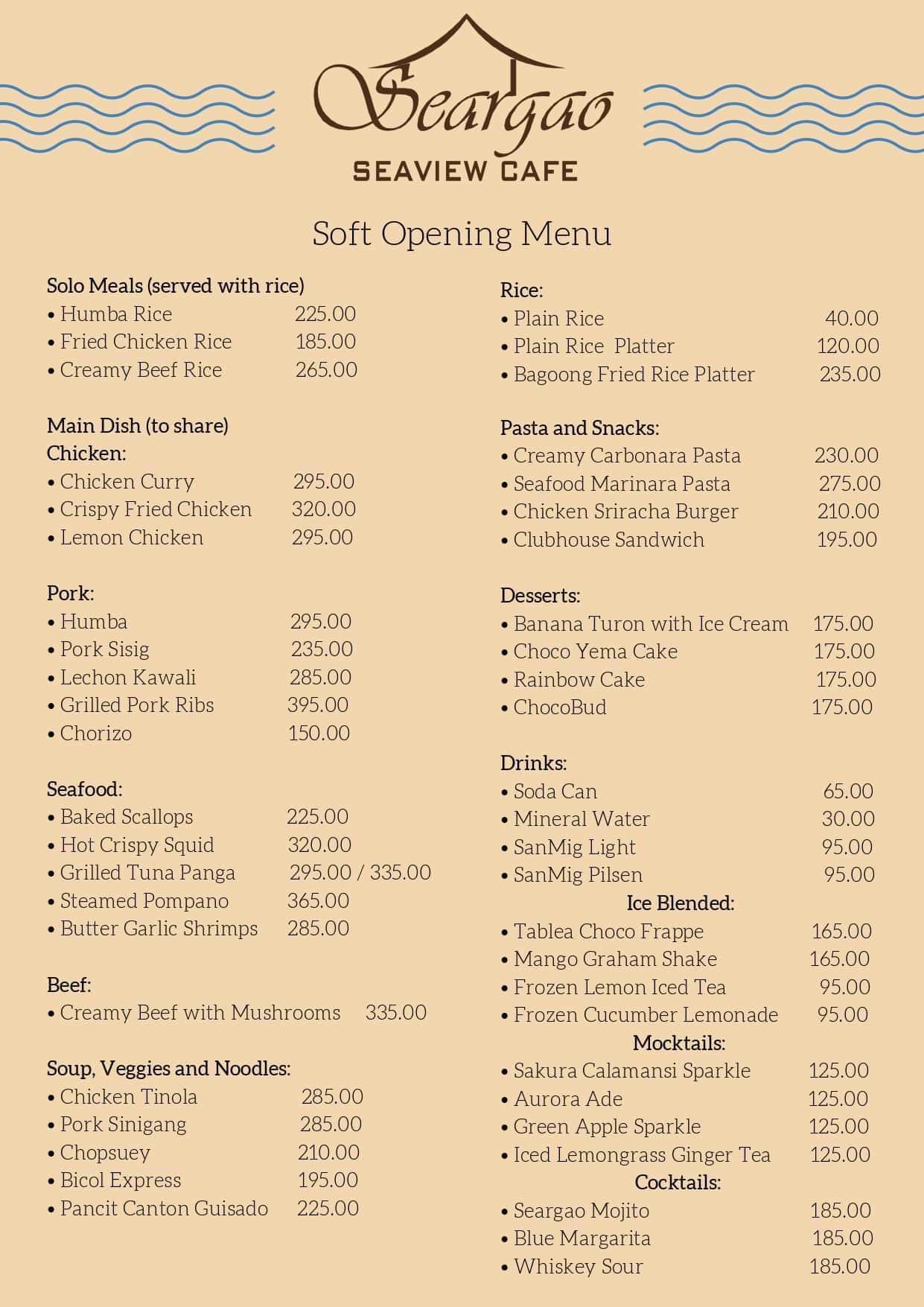 Seargao Seaview Café is a newly opened cafe offers delicious food and stunning views of the sea. It has large gardens, Seaview decks, a boardwalk with sea villas, and pavilions where you can grab those aesthetic photos like you are in Siargao! Besides that, they also have exciting activities like the seawater net pool, water adventures, crystal kayaks, and more! You can hold special events like birthdays, weddings, and dates with your loved ones too. )